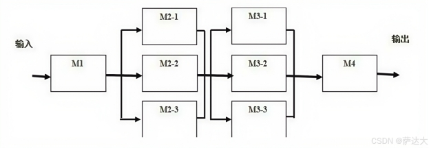李工给出的方案同时采用了串联和并联方式,其计算方法为首先计算出中间M2和M3两个并联系统的可靠度,再按照串联系统的计算方法计算出整个系统的可靠度。