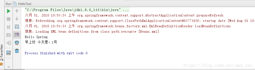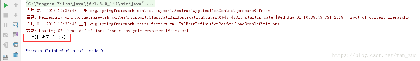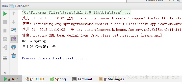 运行结果也是一样的,Spring框架简化java开发的作用就开始体现出来了,通过面向接口编程,不用理会GoodMorning类中是怎么样实现以及xml配置文件中的配置方式。