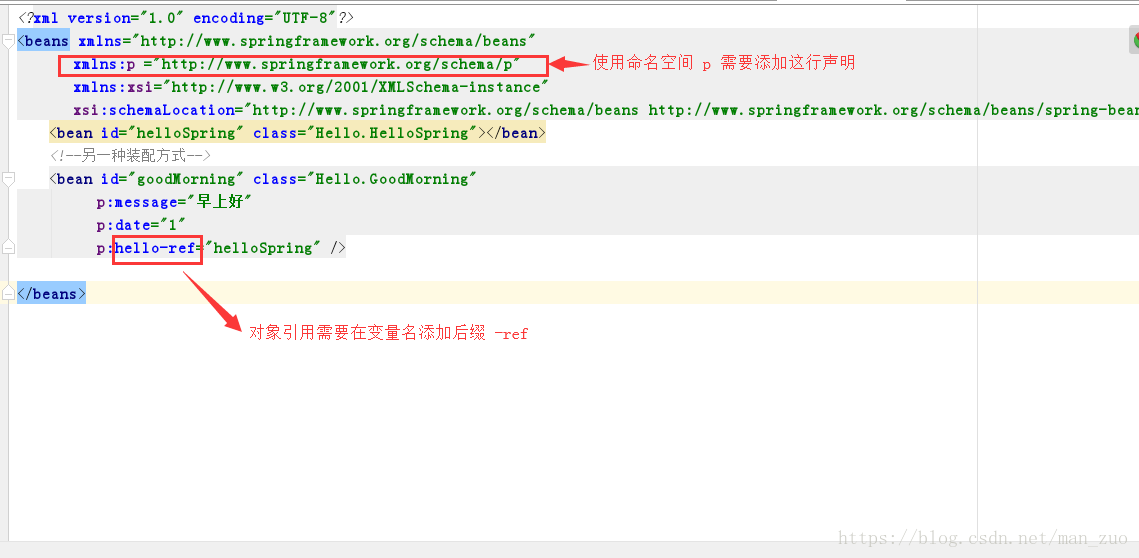 p:hello-ref="helloSpring" />