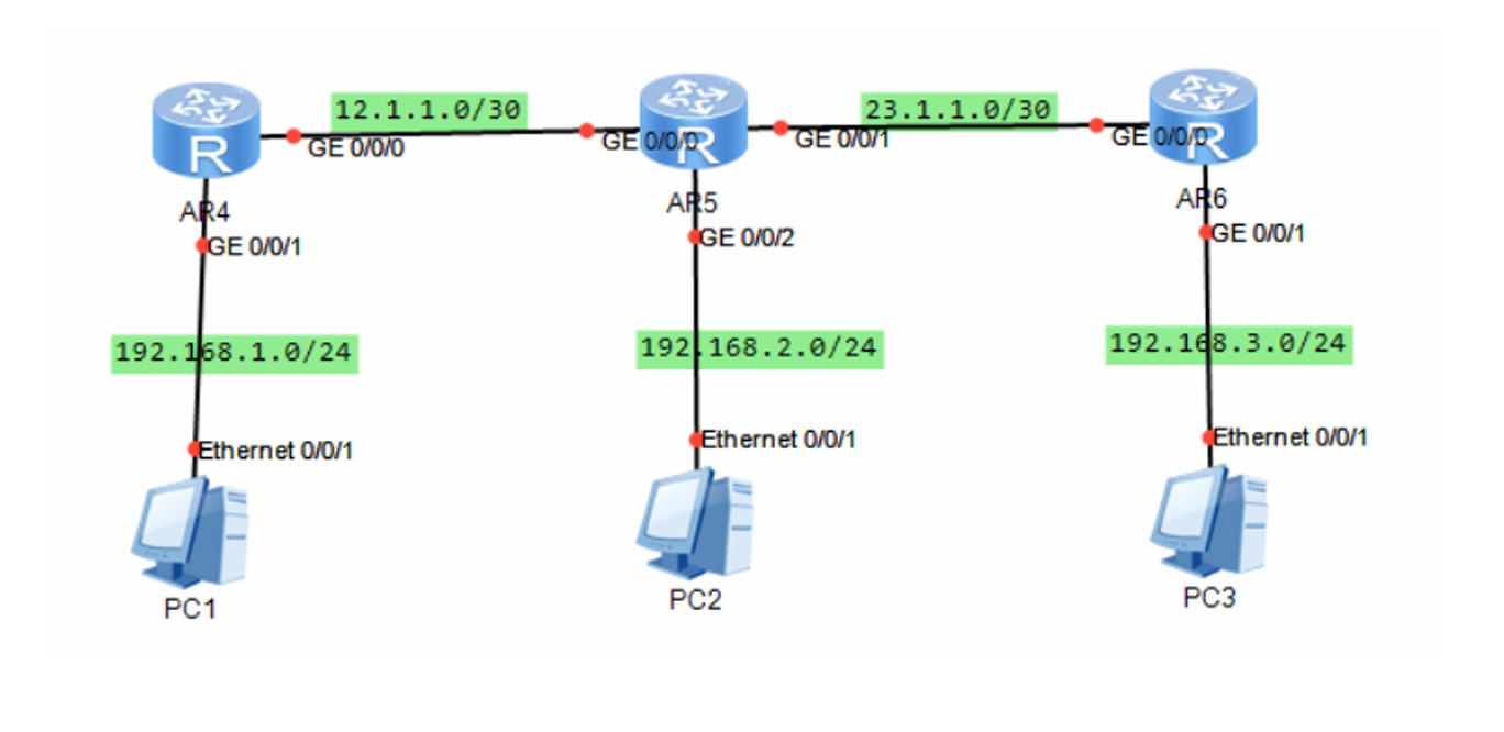 [R3] ip route-static 0.0.0.0 0.0.0.0 23.1.1.2