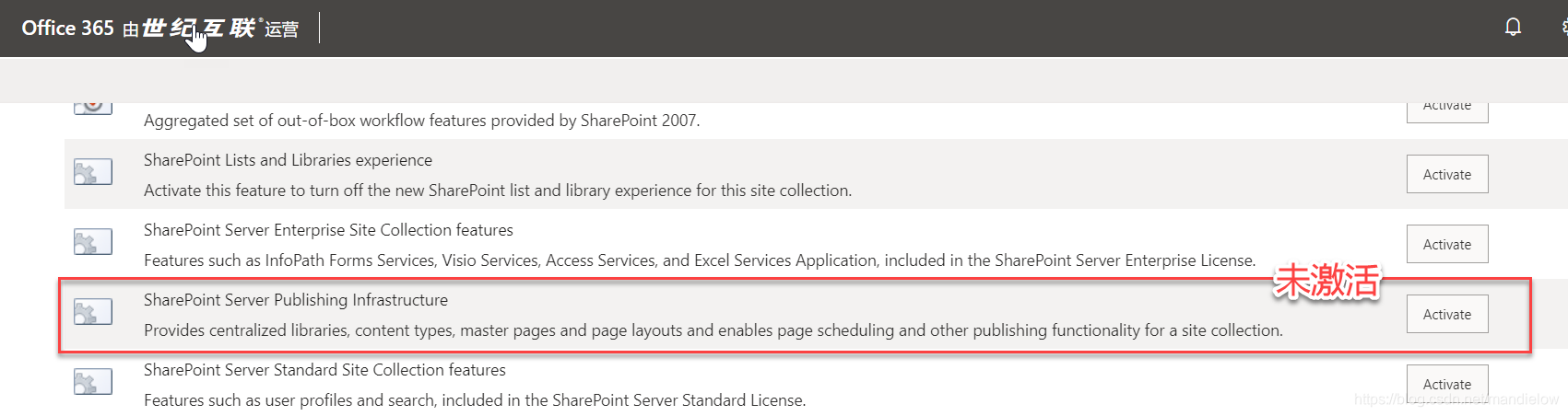 在网站集功能界面,查一下“SharePoint Server 发布基础架构”功能是否处于开启状态,如果是的话,要点击“停用”,将它停用。