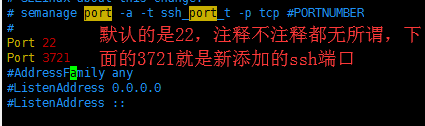 3.更改ssh配置文件/etc/ssh/sshd_config ,将Port 22取消注释,再加一行Port 3721,