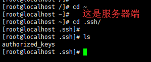 5.此时到服务器上的root家目录,cd ~后cd .ssh/ 这里面就有秘钥文件了。没在客户端做第四部的话,那么在服务器端是看不到传来的秘钥文件的。