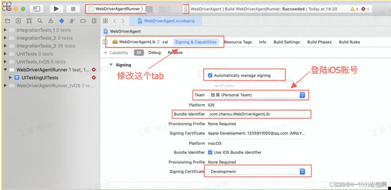 第四步 修改WebDriverAgentRunner文件的 Signing&Capabilities
