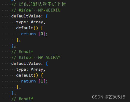 首先找到u-select这个源码文件,找到props里面的defaultValue,修改里面的默认值0为1,为了不影响到vx小程序,可以用ifdef去进行条件编译,以下是我的代码