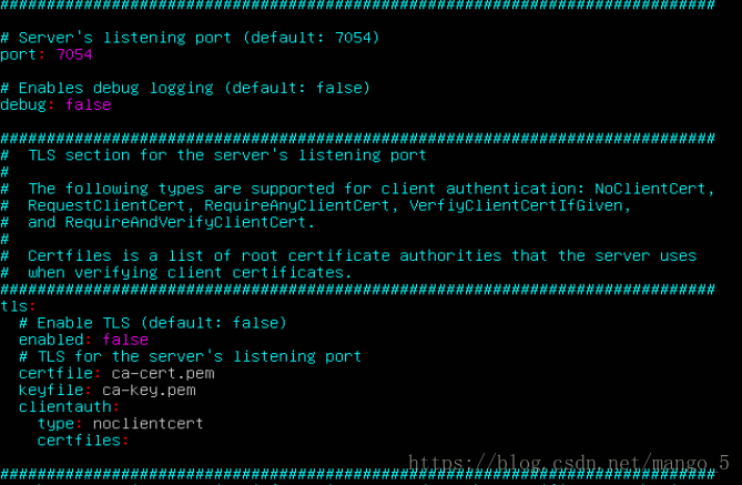 开启之后,在当前目录下则会创建一个名为fabric-ca-server-config.yaml的文件,里面包含了fabric-ca-server的所有配置信息。