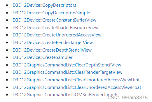 同样,在CPU描述符堆中的描述符就是CPU Desciptors,可以存储所有类型描述符,但是因为不能被Shader直接访问到,所以称为Non Shader Visible,需要特殊说明的是,只有CPU Descriptors可以执行显示的赋值操作。