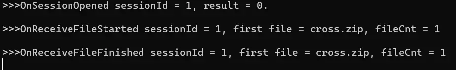 - B 端(或 A 端)选择为文件接收端,执行 19 - SetFileRecvListener, 注册文件接收监听。