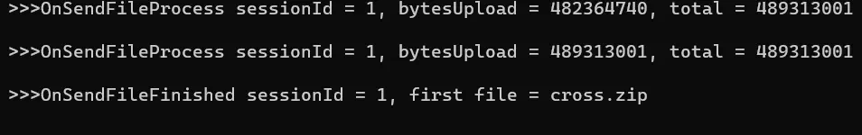 - A 端(或 B 端)选择为文件发送端,执行 18 - SetFileSendListener, 注册文件发送监听。