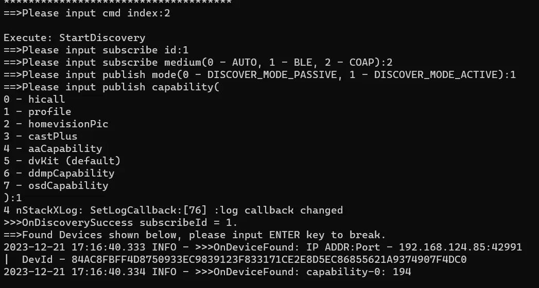- B 端执行 2 - StartDiscovery,订阅服务。