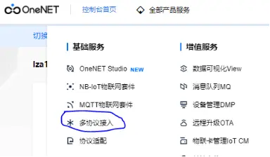 然后进入控制台,鼠标放在全部产品服务,选择多协议接入