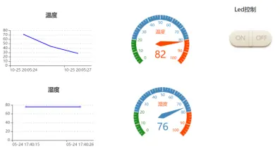 先看下效果,我这边使用的是OneNET物联云平台,进入应用,可以看到如下网页界面。该网页的温度、湿度数据由 鸿蒙开发板(Hi3861)上传,同时有一个开关按钮,可以控制开发板的LED灯。