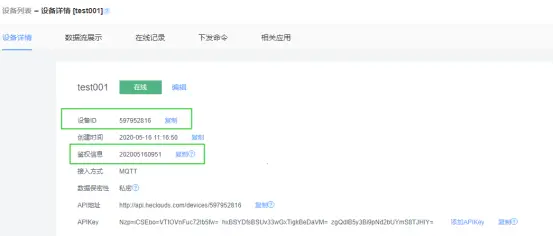 设备ID和鉴权信息,可以通过查看设备详情得到:
