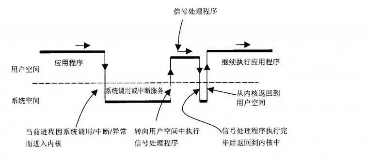 - 信号消费的过程的上图可简化表示为: user.source() -> kernel.syscall(N) ->user.sighandle() ->kernel.syscall(sigreturn) -> user.source() 在原本要回到user.source()的中间插入了信号处理函数的调用. 这正是本篇要通过代码来说清楚的核心问题.