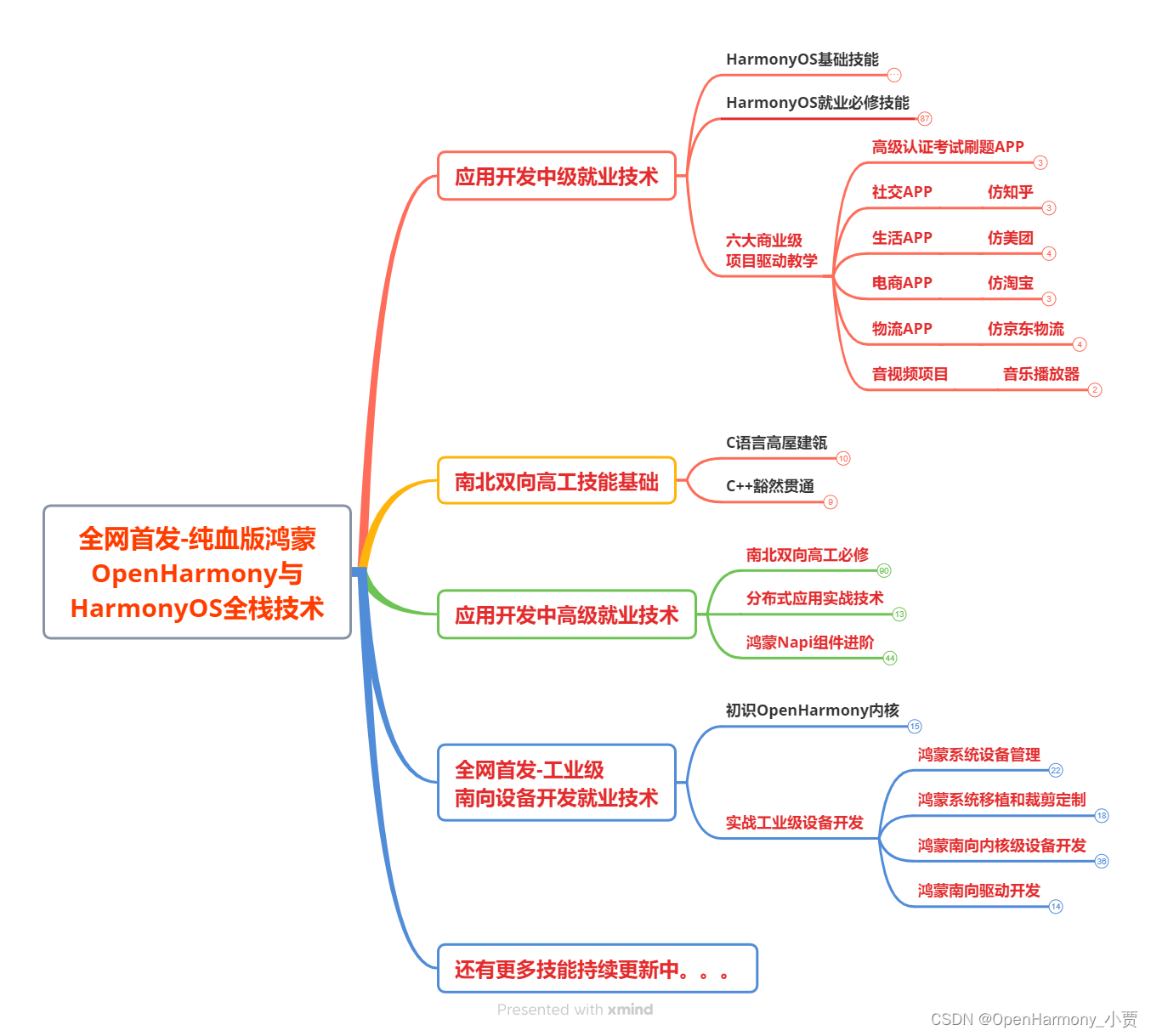 路线图包括ArkTS基础语法、鸿蒙应用APP开发、鸿蒙能力集APP开发、次开发多端部署开发、物联网开发等九大模块,六大实战项目贯穿始终,由浅入深,层层递进,深入理解鸿蒙开发原理!②多层次,更多的鸿蒙原生应用: