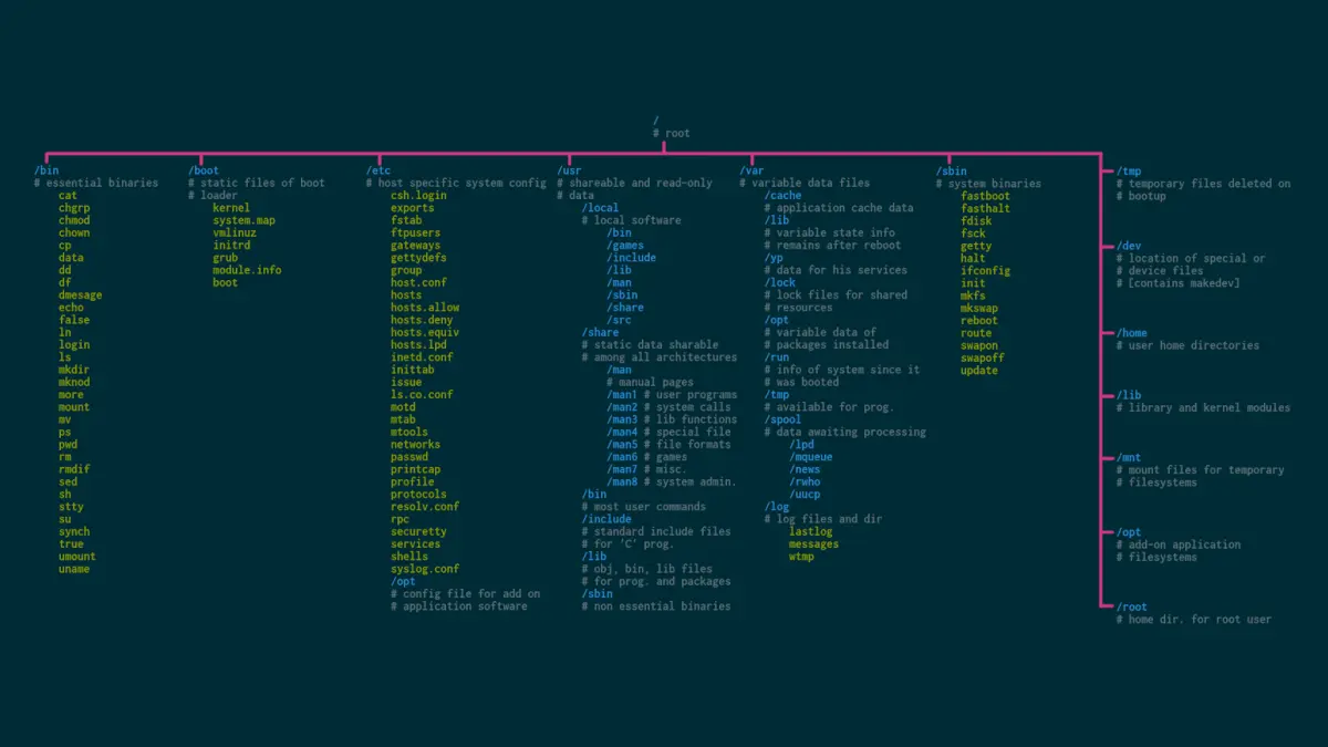 文件系统层次结构标准(英语:Filesystem Hierarchy Standard,FHS)定义了Linux操作系统中的主要目录及目录内容。FHS由Linux基金会维护。 当前版本为3.0版,于2015年发布。基本目录如下: