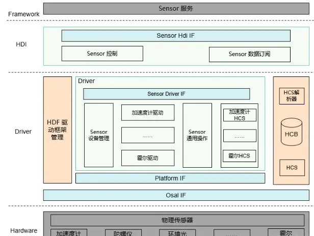 为了降低应用开发的难度,增加传感器驱动的可复用性, 鸿蒙Sensor(传感器)驱动模块为上层Sensor服务系统提供稳定的Sensor基础能力API,包括Sensor列表查询、Sensor启停、Sensor订阅及去订阅,Sensor参数配置等功能;基于HDF(Hardware Driver Foundation)驱动框架开发的Sensor驱动模型,实现跨操作系统迁移,器件差异配置等功能。