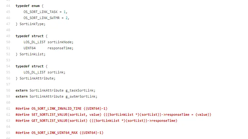 为了准确性以及时效性,本文选取了最新的版本的代码来描述。上述检查点和时间点由链表结构进行定义。具体在kernel/liteos_m/include/los_sortlink.h文件中。