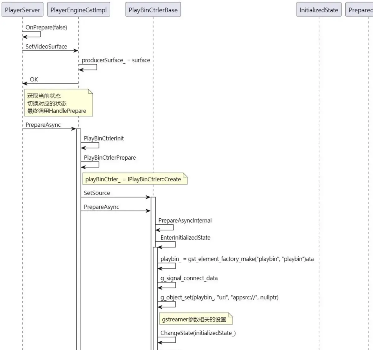 首先,在PlayerServer的PrepareAsync中会调用OnPrepare(false),具体是在OnPrepare(false)中实现,参数传入false,表明调用的是异步方法。