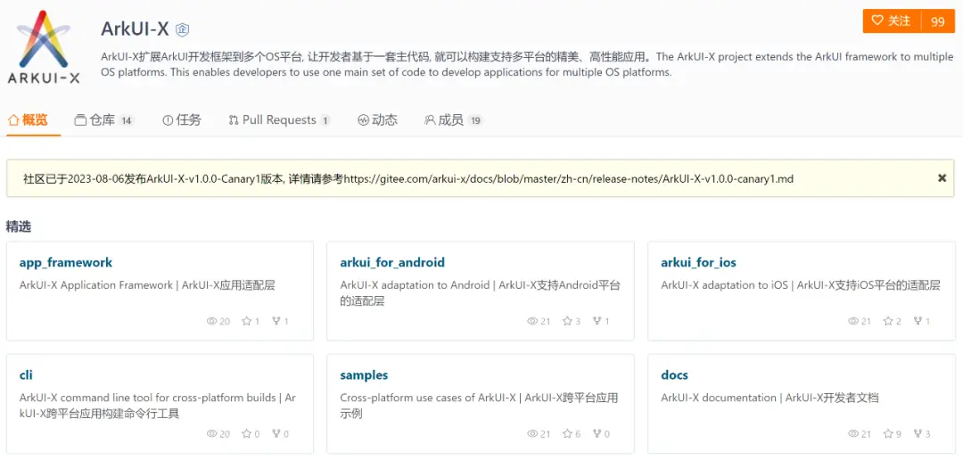 OpenHarmony项目群技术指导委员会(以下简称“TSC”)-跨平台应用开发框架TSG所孵化项目 —— ArkUI-X,近期已正式开源 ,开发者基于一套主代码,就可以将在OpenHarmony上开发的精美、高性能应用同时运行在Android、iOS等其它OS平台上。ArkUI-X开源项目地址:https://gitee.com/arkui-x 。