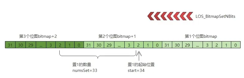 VOID LOS_BitmapSetNBits(UINTPTR *bitmap, UINT32 start, UINT32 numsSet)