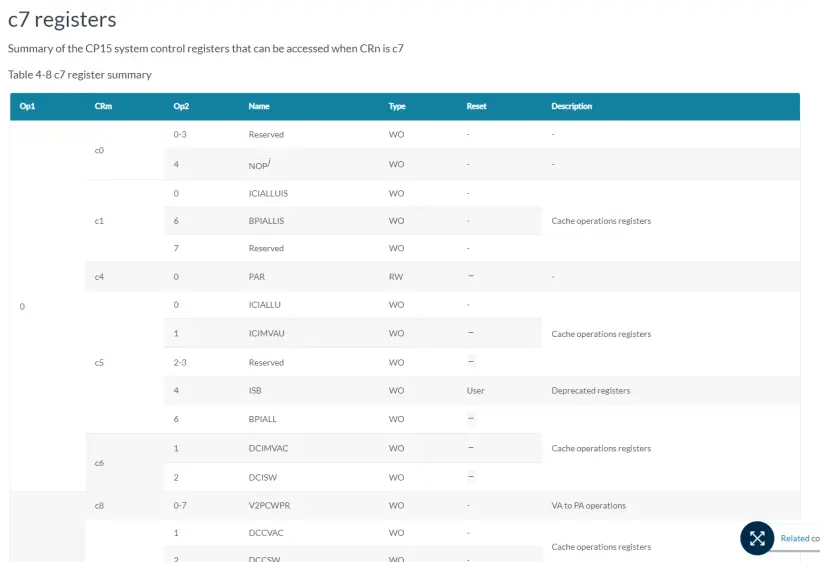 代码比较简单,结合下图,自行查看即可。该图来自《ARM Cortex-A9 Technical Reference Manual r4p1》CP15 system control registers grouped by CRn order部分。