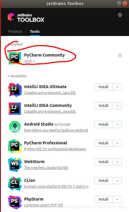 然后找到pycharm community版本安装,安装完成之后可以直接通过工具打开pycharm