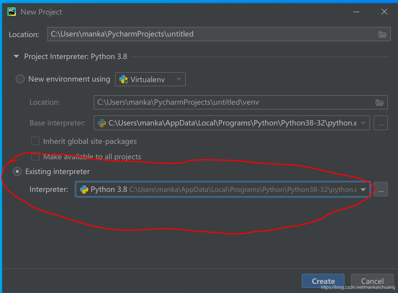 5、第一运行pycharm,会提示你将charm加入/usr/local/bin/charm,这里选中加入,以后就直接可以通过命令行输入charm运行pycharm,创建新工程的时候,解释器一定选择已经存在的interpreter,这样就可以加载已经下载的解释器,图片是我从windows界面截取的,ubuntu界面但是忘记保存了