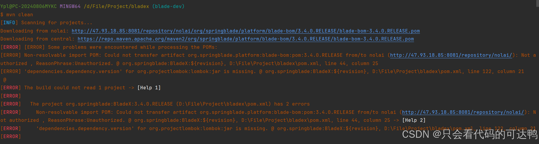 出现的问题:IDEA中使用Maven工具进行install完全没有事,但是在控制台使用Mvn install的时候出现拉取依赖的问题。