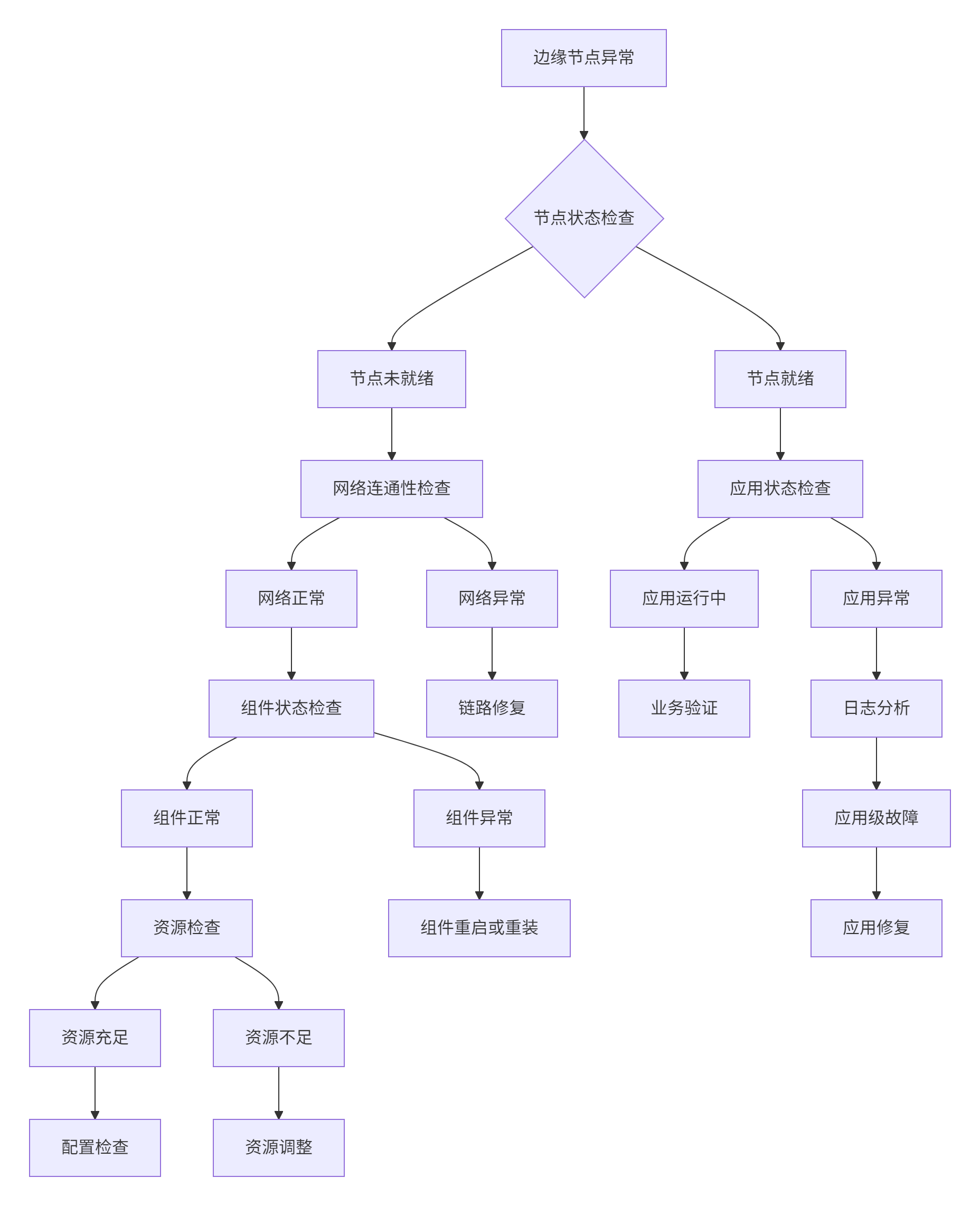 边缘环境故障排查需要系统化的方法,以下是基于实战经验的诊断流程: