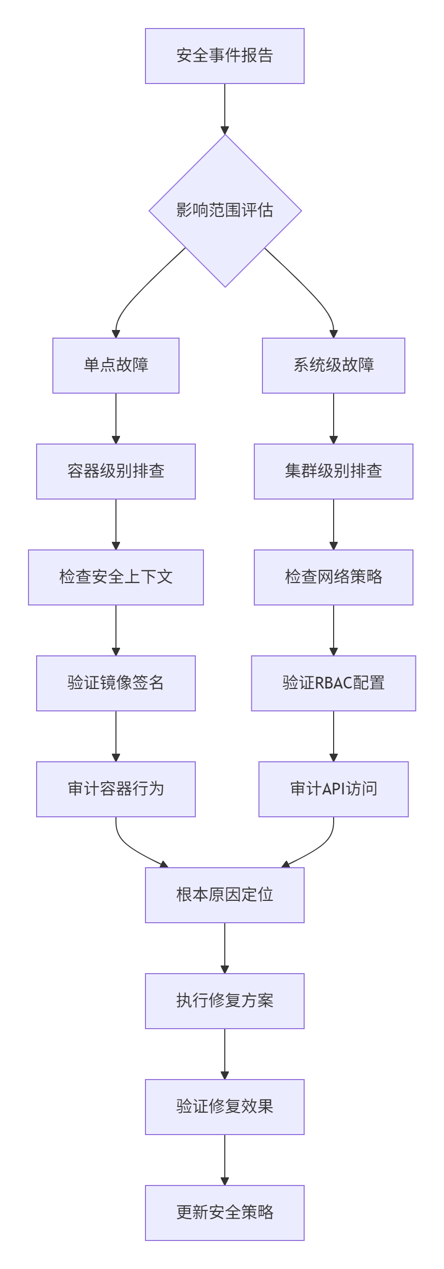 云原生安全环境故障排查需要系统化的方法。以下是基于实践总结的排查框架: