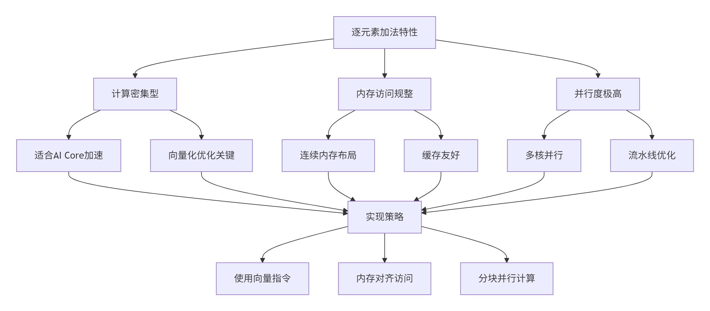 逐元素加法是AI计算中最基础的操作之一,其特性决定了我们的实现策略: