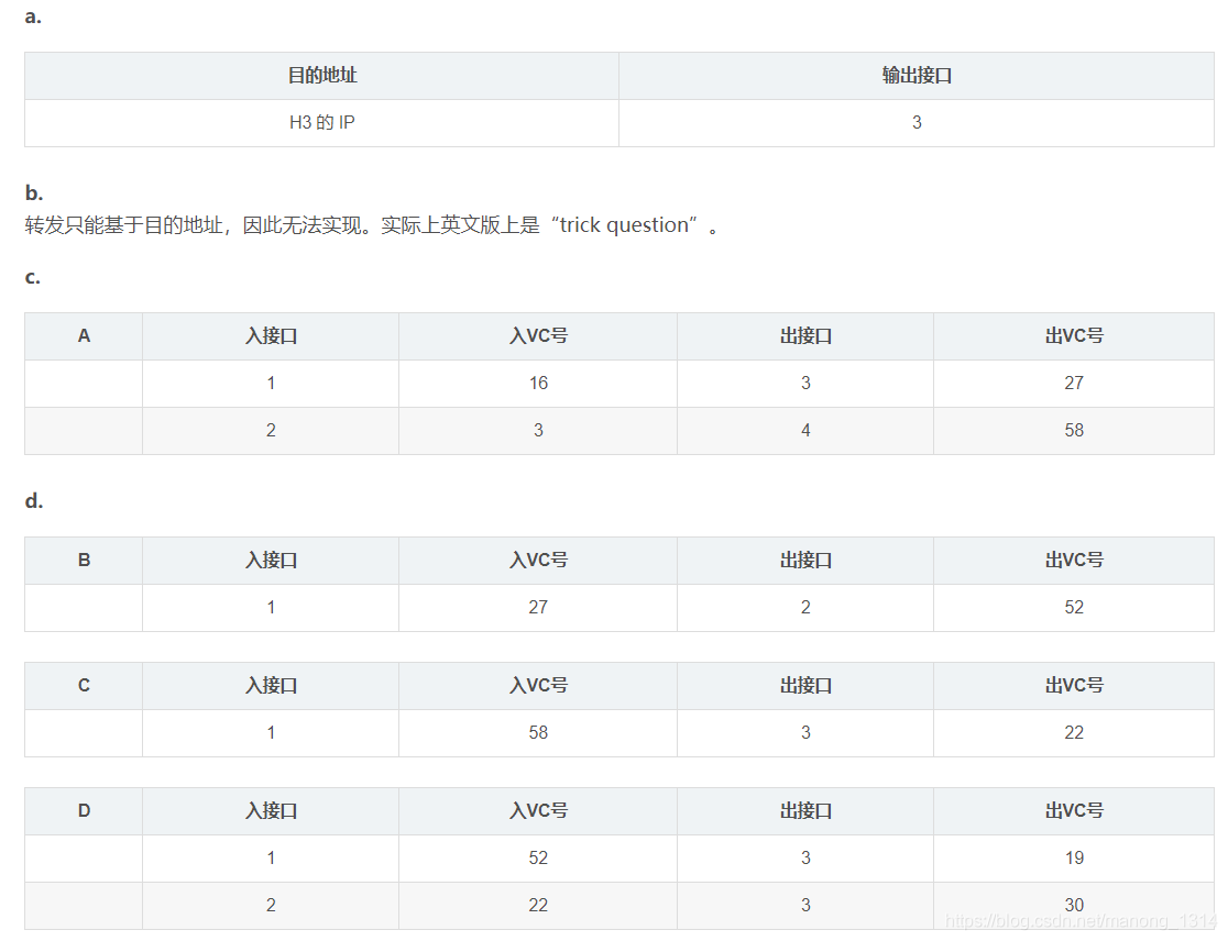 c. 每条链路都能独立分配 VC 号,路由器将这些对应的 VC 号写入转发表,当特定 VC 号的分组到达后,将其 VC 号替换为对应的 VC 号并转发