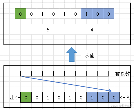 ⑤ 结果:最终得到的商就是模2除法的商,最后剩下的部分(位数比除数少一位)就是余数(Remainder)。