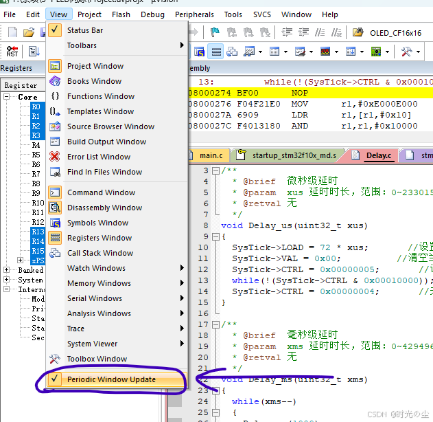 此时在点击一下会发现,我们来到了延时函数内部:
