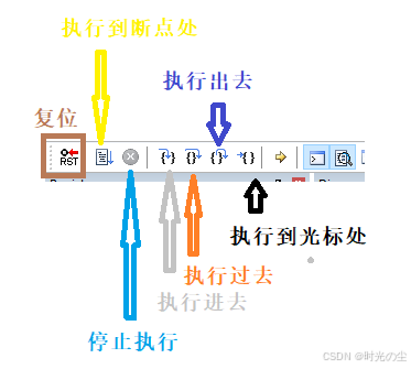 执行到断点处:或者说是开始或继续执行程序按钮。如果程序已经停在一个断点上,点击这个按钮将继续执行程序直到遇到下一个断点或程序结束。也就是说如果没有断点,程序会一直运行。