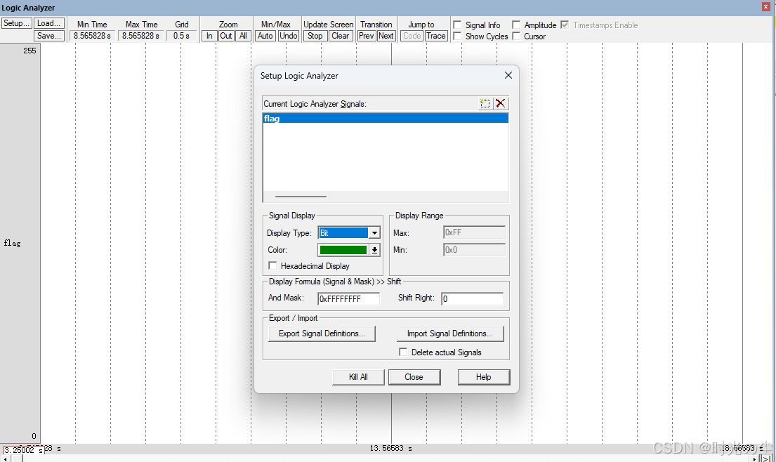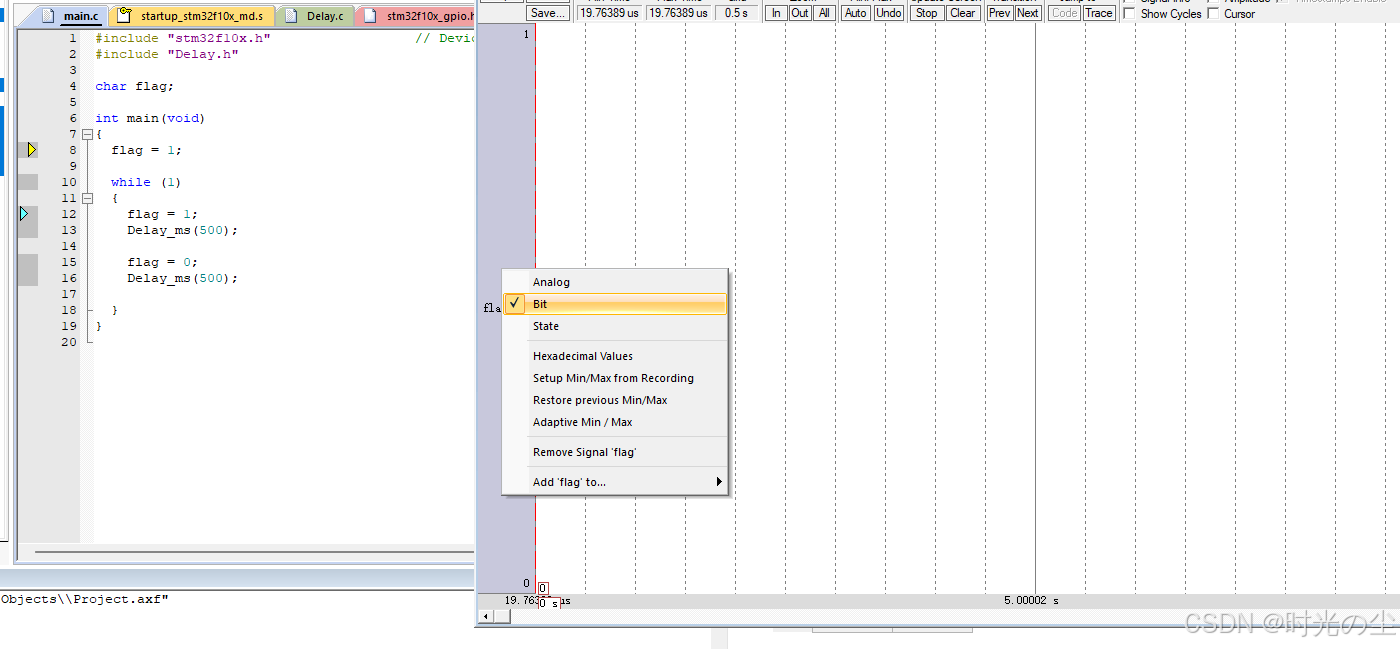 可以发现也能打开逻辑分析仪,然后右键图示位置,将数据调为bit: