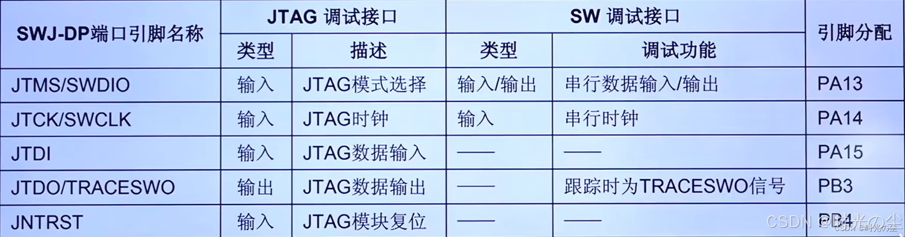 | 对比项 | SWD | JTAG |