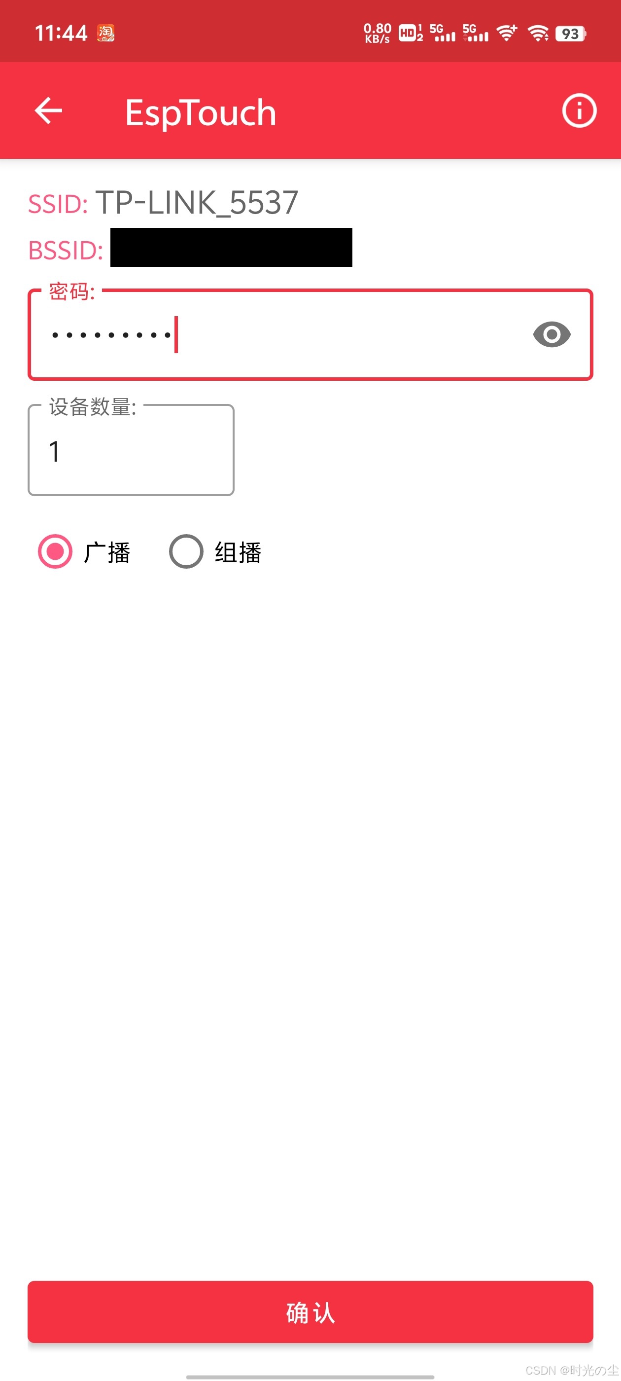 可以看到我们的SmartConfig已经启动,先连接一个2.4GHz的网络: