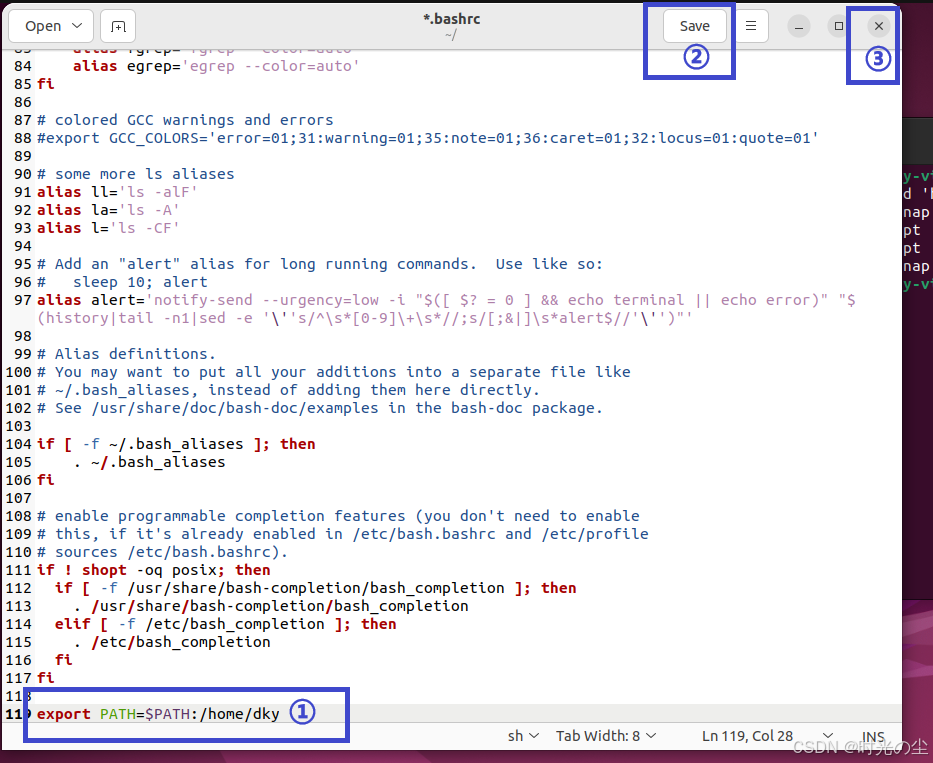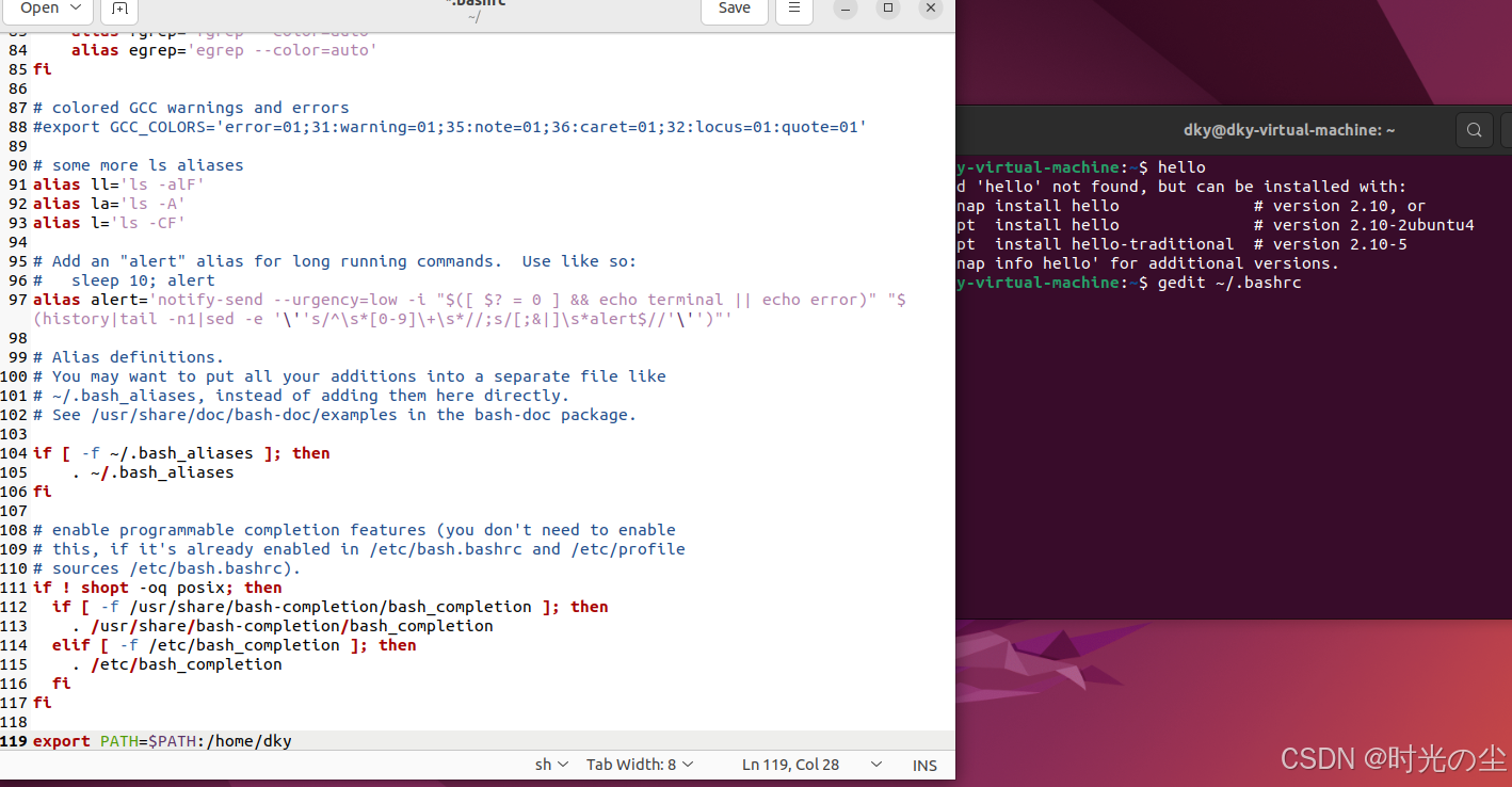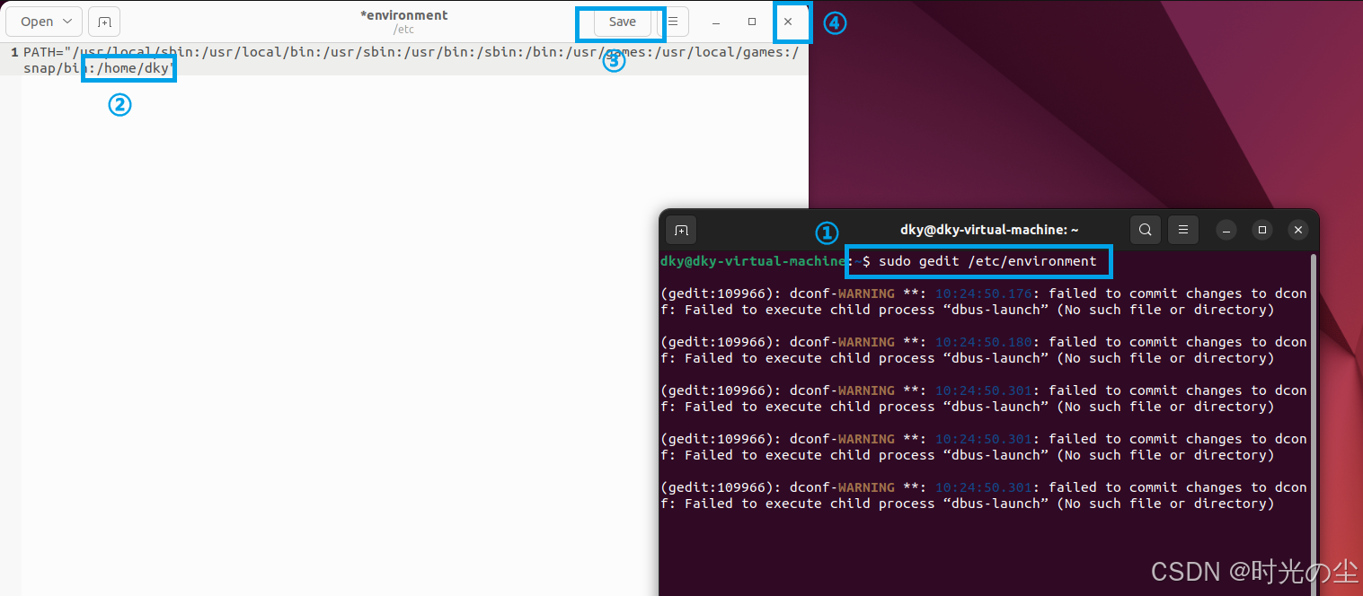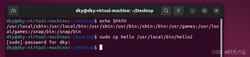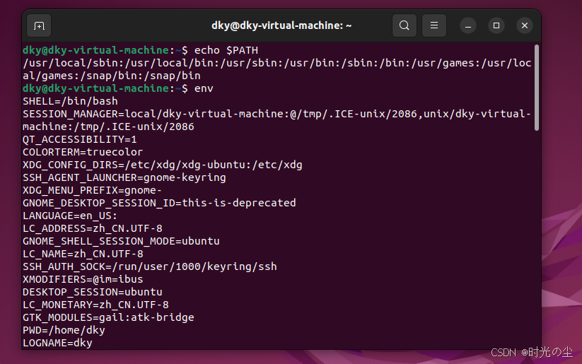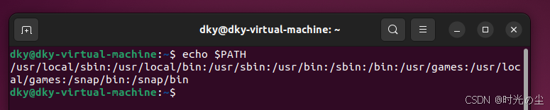 这行命令的意思是,将原来的 PATH 值保持不变,并在其末尾加上一个新的目录 /home/dky。这样,你就可以在终端的任何位置,直接运行存放在 /home/dky 目录下的可执行程序或脚本,而无需输入它们的完整路径。