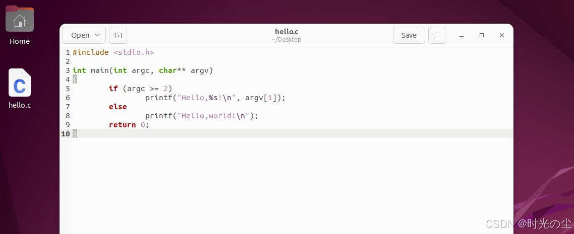 此时我们进入桌面查看会发先只有hello.c文件:
