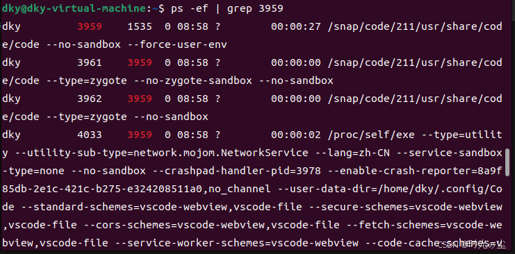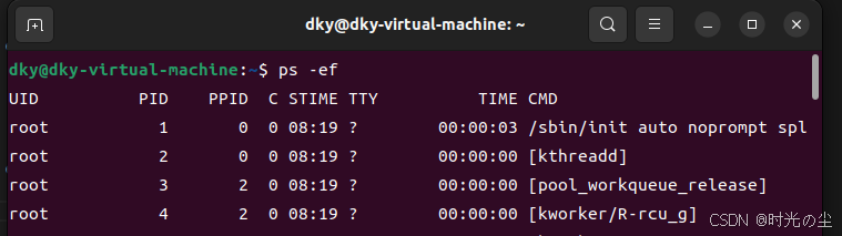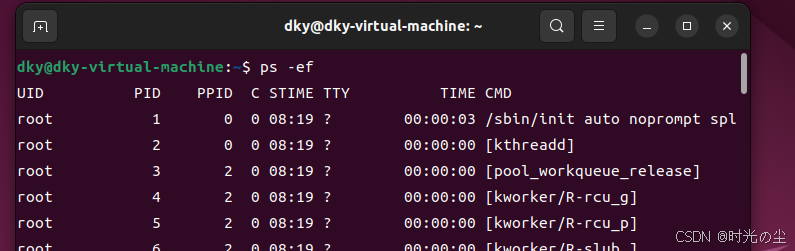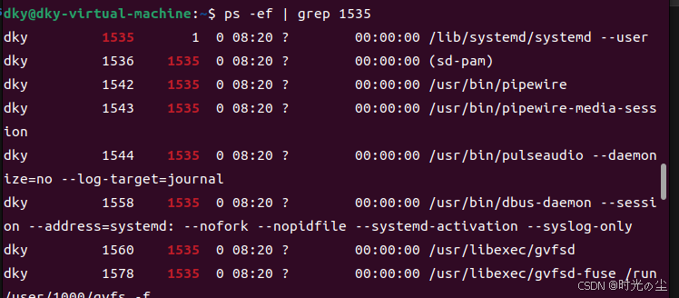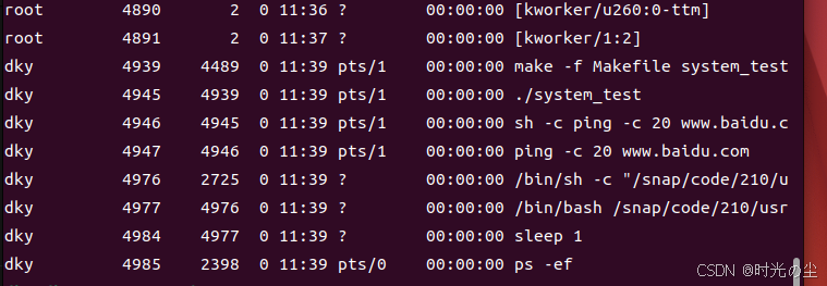 我们把ping百度的次数延长一下,通过终端 ps -ef 看一下进程管理:
