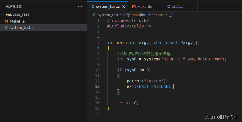 我们创建一个system_test.c文件验证一下,首先我们创建一个变量sysR用来接收函数返回值,通过返回值,来判断函数:
