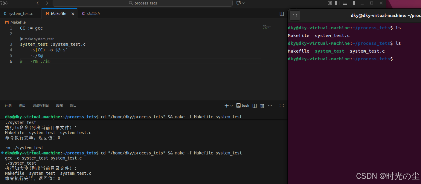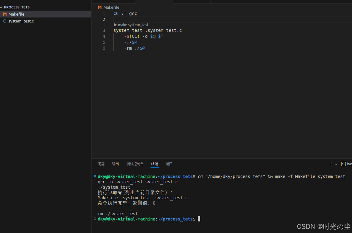 那是因为打印文件,实在rm之前,我们后面通过rm将system_test删除了,我们可以现将rm这段注释掉看一下: