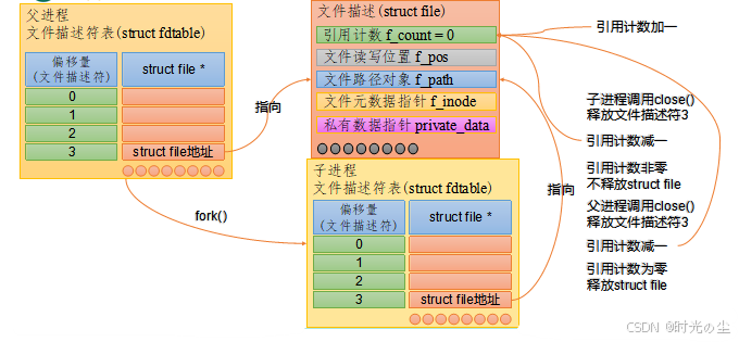 fork创建一个新的进程,原进程称为父进程,新的进程称为子进程。fork创建进程后,函数在子进程返回0值,在父进程中返回子进程的PID。两个进程都有自己的数据段、BSS段、栈、堆等资源,父进程间不共享这些存储空间,而代码段为父进程和子进程共享。父进程和子进程各自从fork函数后开始执行代码,在创建子进程后,子进程复制了父进程打开的文件描述符,但是不复制文件锁。子进程未处理的闹钟定时被清除,子进程不继承父进程的未决信号集。