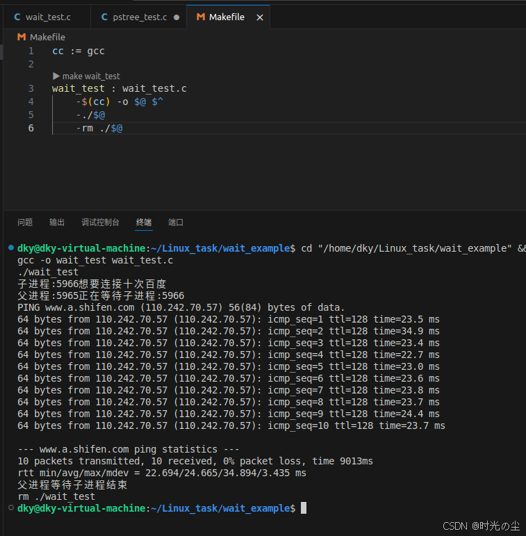 我们开始编写一个代码看看,首先创建一个fork_test.c文件用来存放我们后续工程,我们先来查看一下当前进程: