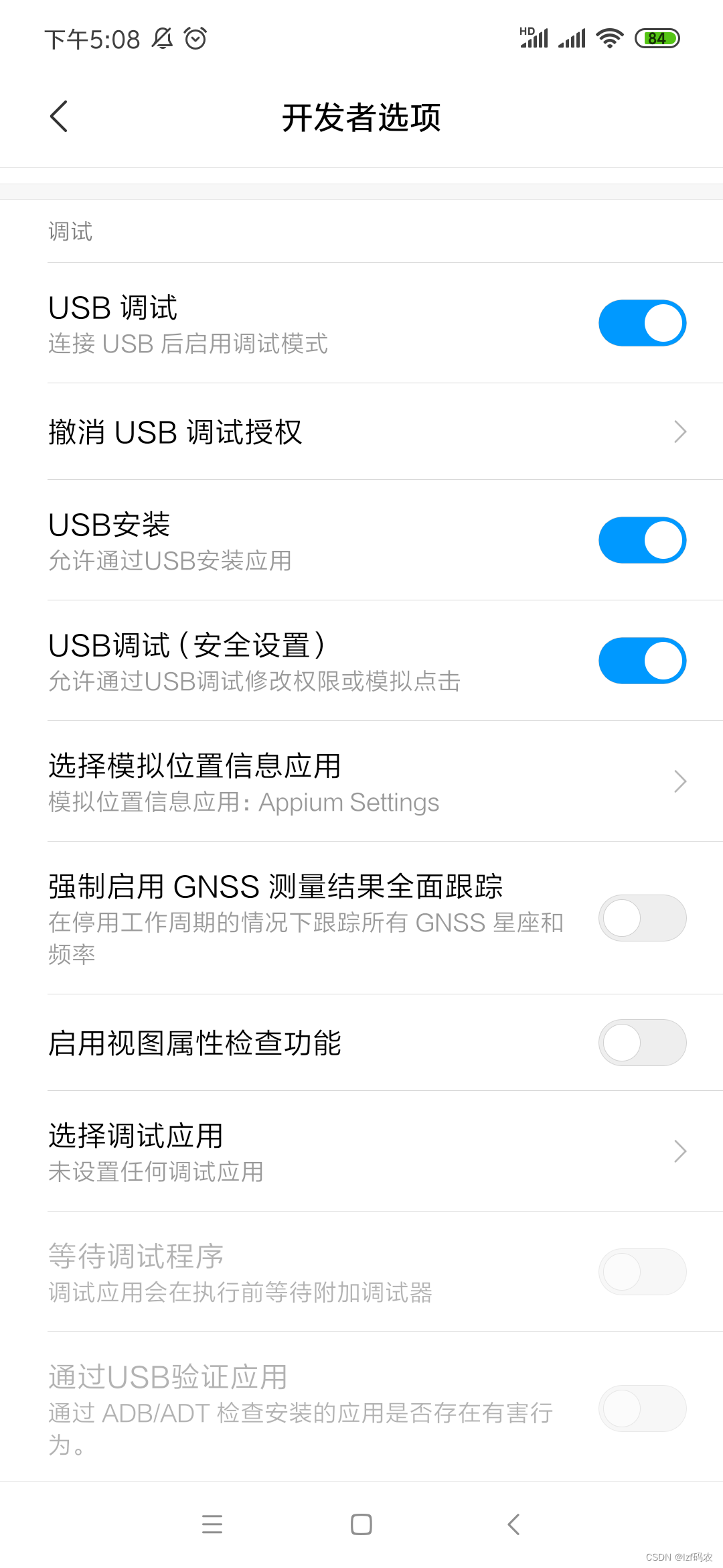 然后,1.设置--2.更多设置--3.开发者选项--4.USB调试,USB安装,USB调试(安全设置)这个三都要开启(鼠鼠就是这里浪费了时间)