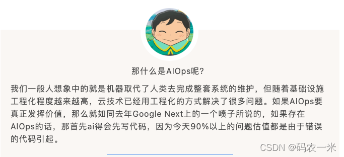 收入的可疑,并没有改变人们趋之若鹜的热情,依然什么东西,只要沾着AI也会火,就连最苦逼,屡屡背锅的Ops领域,沾染了这个概念,也顿时变得高大上了起来,一个AIOps,让大量人过中间的从业者们腰杆都硬了起来。