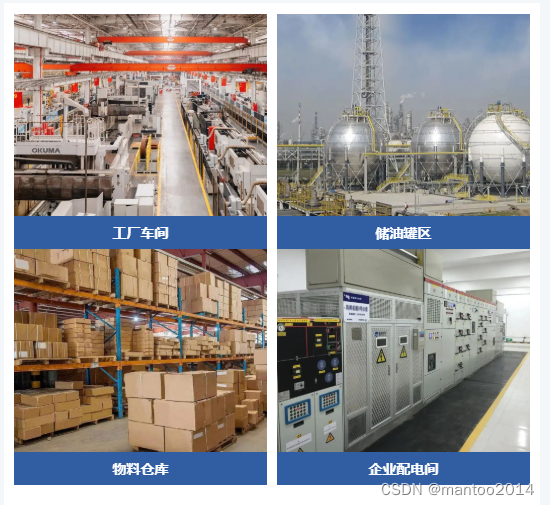 - 火情监测,采用火焰探测器和烟感实时监测。