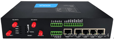 MTW563A 网关是一款工业级 5G 千兆网关,具有更强的运算能力。设备具有多功能性、稳定性和可扩展性,具有速度快、功能强、支持边缘计算的特点。支持全网通 5G/4G/3G,并往下兼容 EDGE、CDMA 1X 及 GPRS 网络,同时支持多种 VPN 协议(OpenVPN、IPSEC、PPTP、L2TP 等)来保证数据传输的安全性。可无缝对接各类 PLC 工业组网应用。可选嵌入水利、环保行业标准规约。支持 4×LAN、1×WLAN、1×RS232(1×RS485)、1×RS485、SIM 卡、TF 卡、2×DI(可选)、3×继电器(可选)、3×ADC(可选)、4×POE 供电(可选)、Wifi 功能(可选)、单模双卡(可选)、双模双卡(可选)。